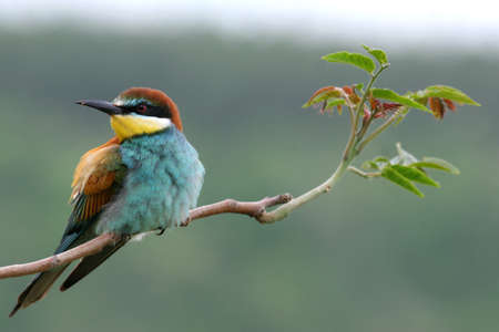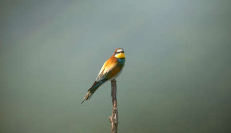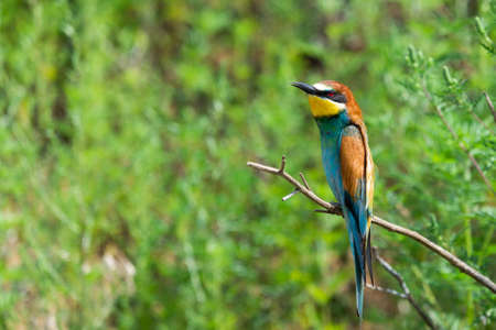 European Bee-eater, beautiful colored bird sitting on a twig, Merops apiaster, Dobrogea, Romania