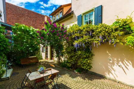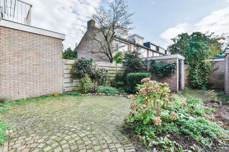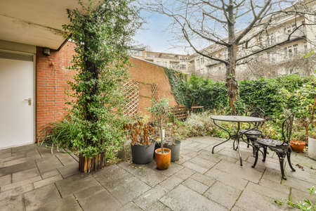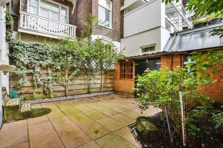 Delightfully beautiful courtyard with greenery and clearly laid cobblestones