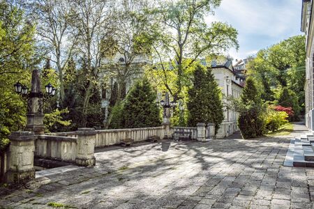 Courtyard of the forestry school in old mining town Banska Stiavnica, Slovak republic. Travel destination.