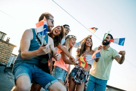 Friends of different culutres having fun, promoting peace without racial prejudices