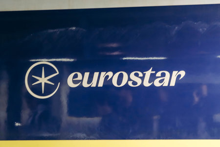 London, United Kingdom - September 25, 2023: Close up on a Eurostar train on a platform in London, ready to depart for Paris.