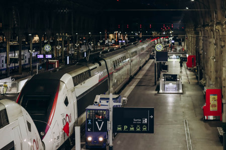 Nice, France - 30 June 2023: Nice railway station, platforms and trains in the late evening