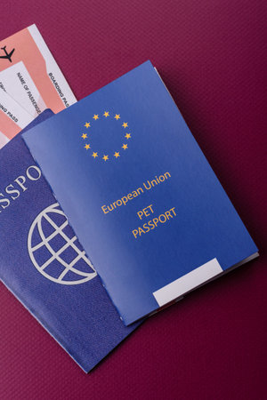 A pet passport is a document with vaccination and travel information for a cat, dog, or other animal. A pet passport as a background for your design.