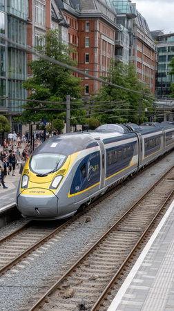 London, United Kingdom - September 25, 2023: A Eurostar train stands on a platform in London, ready to depart for Paris.