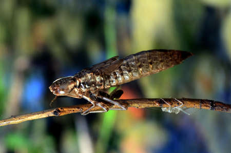 caddisfly larva Phryganea specie in protective cases or shell, made of plant pieces, pieces of leaf and wood