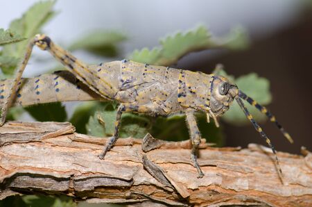 Female of Gran Canaria stick grasshopper Acrostira tamarani. Integral Natural Reserve of Inagua. Tejeda. Gran Canaria. Canary Islands. Spain.
