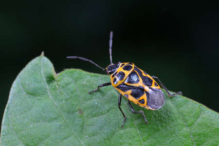 stinkbug on green leaf in the wild natural state