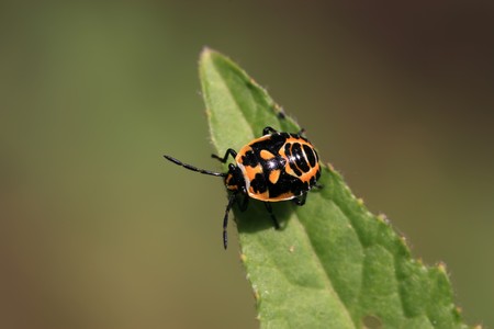 Shieldbug in Croatia, possibly the harlequin bug Murgantia histrionica , a pest in gardens