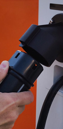 DC ultra fast charge for EV car, CCS type 2 connector in charging station