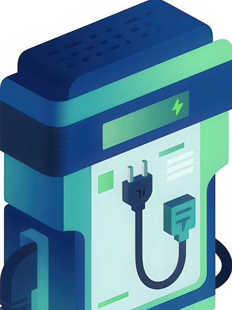Electric Vehicle charging Ev station with plug of power cable supply for Ev car. Smart Enegy.