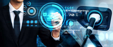 EV Charger plug charging EV car, New technology trend electricity vehicles for sustainaility and lobal warming issue