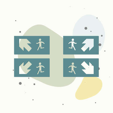 fire hazard. Route of evacuation vector icon. Icon of evacuation. Emergency exit on multicolored background. Layers grouped for easy editing illustration. For your design.