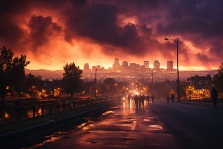 the city sky seemed to be on fire and the sky turned black professional photography