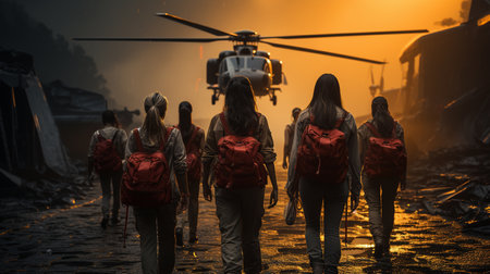 Survival amidst chaos and conflict fleeing danger in wartorn setting. Concept Warzone Survival, Fleeing Danger, Conflict Escapes, Wartorn Reality, Chaos and Challenges