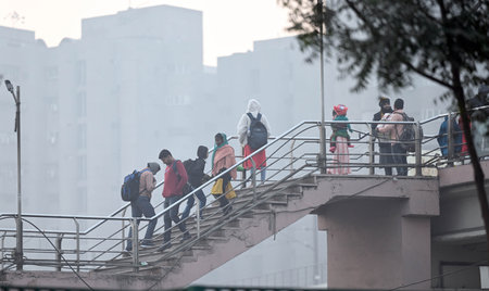 NEW DELHI, INDIA – DECEMBER 14: Commuters out on amid smoggy and cold winter morning near Anand Vihar, on December 14, 2023 in New Delhi, India. (Photo by Sanjeev Verma/Hindustan Times )