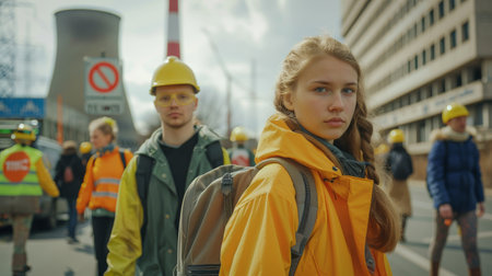 Environmental activists protesting against nuclear energy. Global Climate Strike, international, protests and action against climate change. Generative ai.