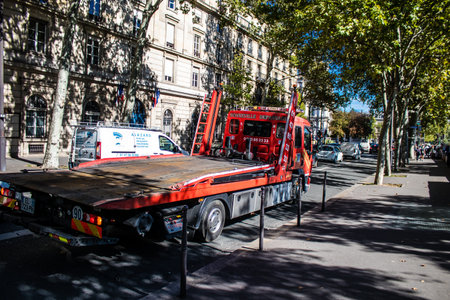 Paris, France - September 14, 2022 Traffic jam in the streets of Paris, an emblematic city and the capital of France