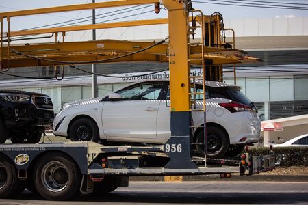 Chiangmai, Thailand - January 7 2020: New Toyota Car on Toyota Transport carrier trailer Truck. On road no.1001, 8 km from Chiangmai city.