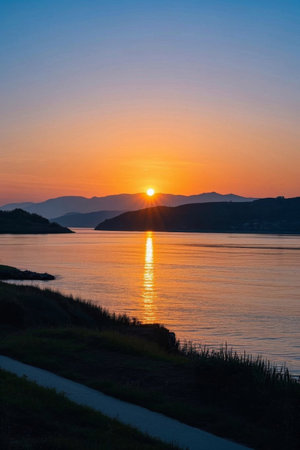 Sunset natural landscape by the lake