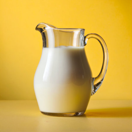 Milk jar pitcher on table, light yellow interior. Generative AI