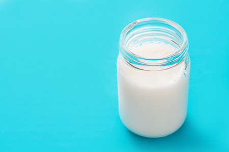 Closeup one bottle and one glass of fresh milk on the table. The benefits of milk