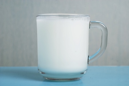 Plain ayran (kefir) fermented dairy drink on grey neutral background.