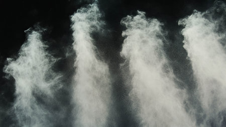 This mesmerizing image features ethereal smoke plumes gracefully rising against a dark backdrop, creating a captivating atmosphere perfect for artistic projects.