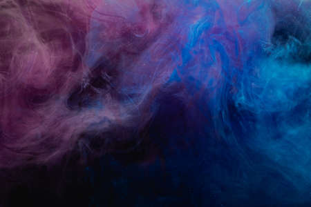 Abstract colored background. Colored smoke, ink in water, the patterns of the universe. Abstract movement, frozen multicolor flow of paint. Horizontal photo with soft focus, blurred backdrop.