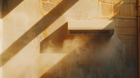 A close-up view of a white air conditioning unit releasing cold air, offering relief on a hot day.