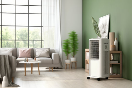 This image showcases a stylish portable air conditioner designed for modern living spaces. It offers efficient cooling and enhances indoor comfort, perfectly fitting into various home decors.