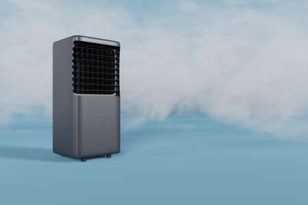 Mobile air conditioning. Air conditioning view from the back. Concept - air conditioning repair. Household appliances store. Replaceable filter. Technique for ventilation. Room temperature cooling.