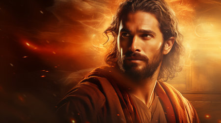 Portrait of Jesus Christ after his resurrection is a powerful image for Easter symbolizing the promise of salvation and new life at the hearth of Christian faith. Superb Generative AI