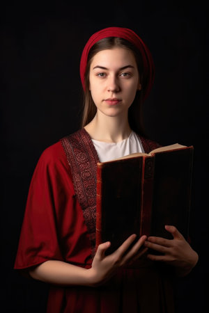 portrait of a confident young woman standing and holding quoting religious passages, created with generative ai