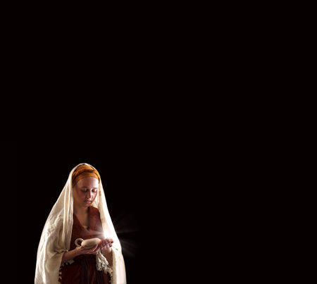 Young lone rural Israeli Jewish holy lady face care happy joy hope hebrew shawl veil cloth. Alone teen child kid meet 5 old wed groom god story fire flame lit 10 black even text space