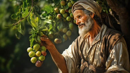 Portrait of a bearded man in the streets of Jerusalem. Biblical character.