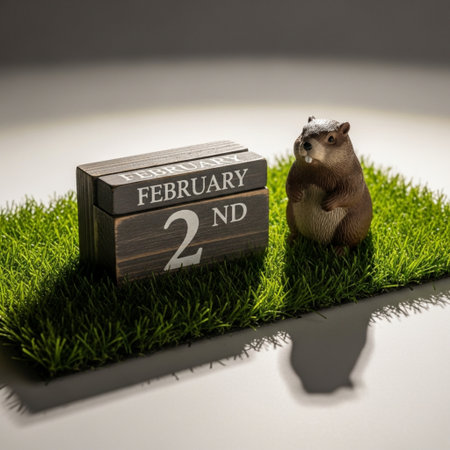 February 20th on wooden calendar and green apple on blue background. Apple Day USA