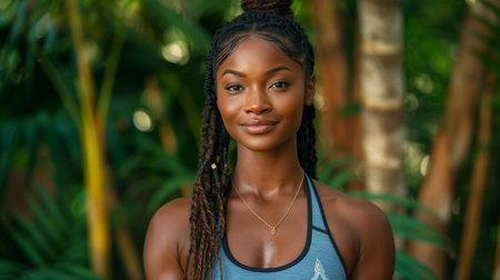 black athlete woman enjoying after exercise training in a park warm sunlight through the trees AI generated