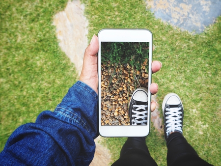 Taking a photo of sneakers with smart phone