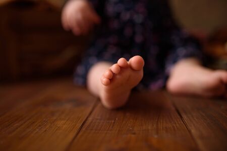 Feet of female legs, close-up. Standing barefoot on the floor