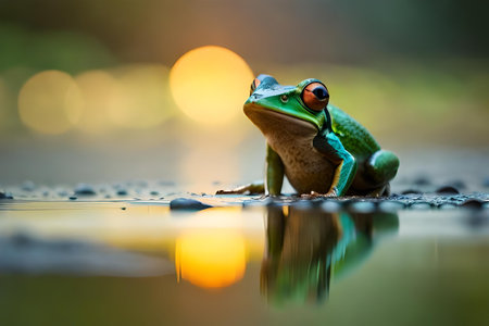 A curious frog perch on a lily mining , its vibrant Green imbue blending with the composure milieu. Creative resource, AI Generated