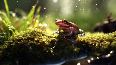 frog with droplets of water, panoramic layout. Generative Ai