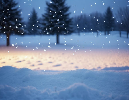 Tranquil Winter Scene with Sparkling Snowflakes