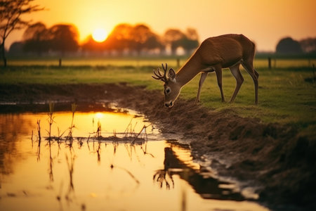 wild life in the setting sun in the summer