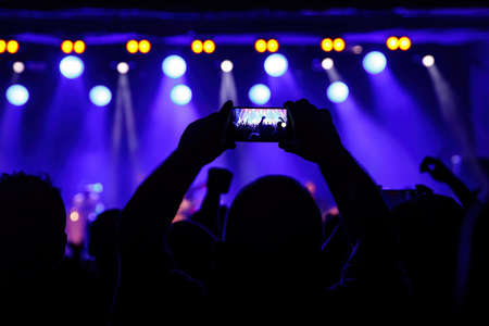 Use advanced mobile recording, fun concerts and beautiful lighting, Candid image of crowd at rock concert