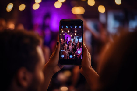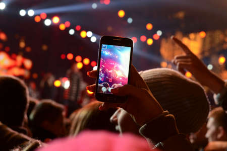 Making video recordings and pics on a smartphone at the concert or light show for publishing on social media.