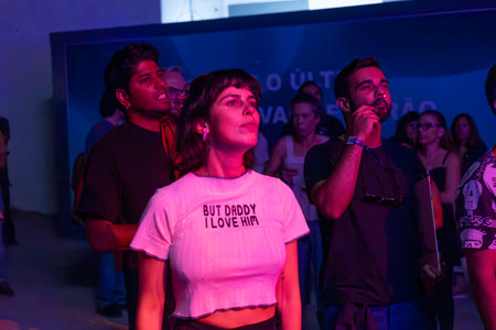 FARO, PORTUGAL: 5th SEPTEMBER, 2024 - Audience watch music artist in the Music Festival F, a big festival on the city of Faro, Portugal