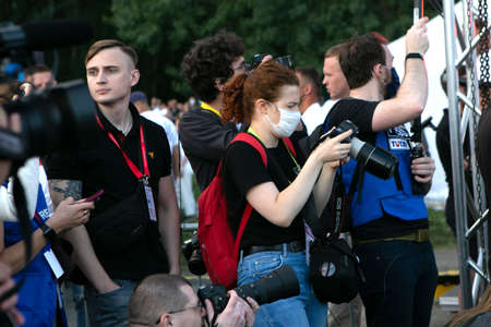 Minsk, Belarus - July 30, 2020: group of photographers works at the event