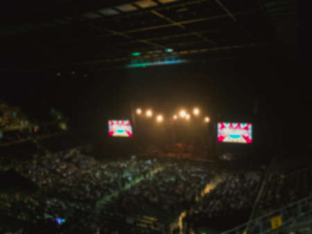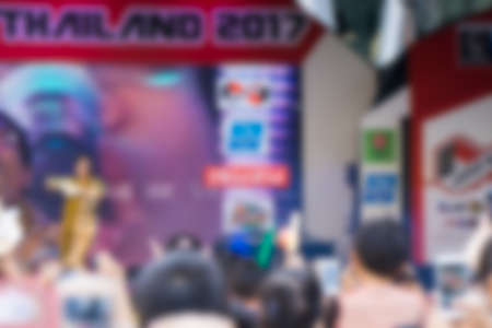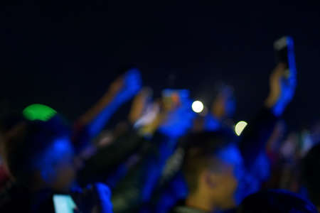 Blurred background : Bokeh lighting in concert with audience ,Music showbiz concept.