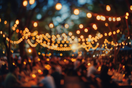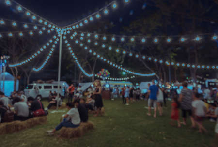 blur people picnic in a public Park with family or friends. the food festival at night.
