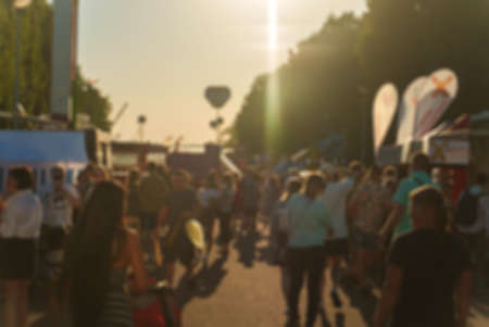 Blurred soft focus background. Kiels week in Germany with people at the festival. Abstract concept with bokeh and light.